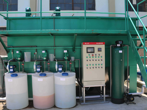 4、在鈣式除磷系統(tǒng)中,加入氫氧化與氫氧化鈣(其配比經(jīng)調式確定,可先按1:1比例進行調試),其PH值控制范圍為9—11(具體控制值經(jīng)調試 確定),而后廢水進入混凝沉淀系統(tǒng);